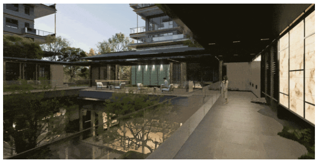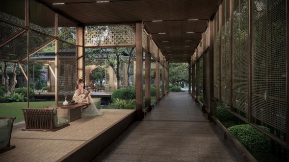 一步一景的迎宾外廊与山水意境水院游廊的递进展开,充满了雅致与静谧的氛围。通过精心设计的光影变化,营造出丰富而复杂的光影效果,给人带来别样的感官体验。营造远离喧嚣的休憩场所,让人们在宁静中放松身心,感受自然的美妙,让人不禁停下脚步,洗涤心中的尘埃。